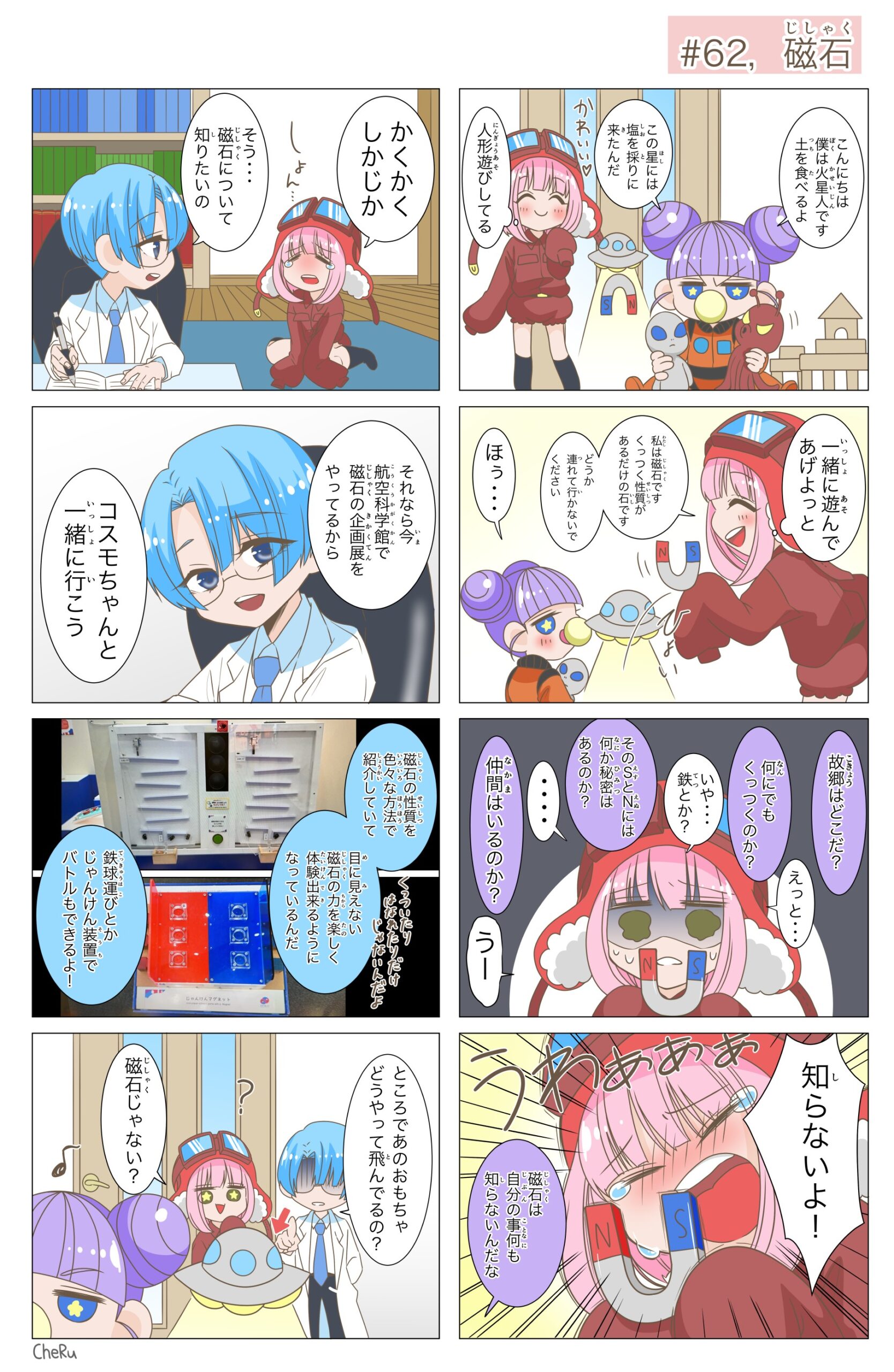 お知らせWhat’s New 🌈科学館連載まんが#62 科学大好きアル君と、飛行機大好きプウちゃん、宇宙大好きコスモちゃんの漫画を掲載)!見逃した方、見ていない方はこちらをご覧ください 😉 2026年3月は#62,磁石