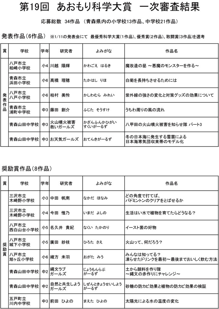 🔬第19回あおもり科学大賞一次審査結果発表!